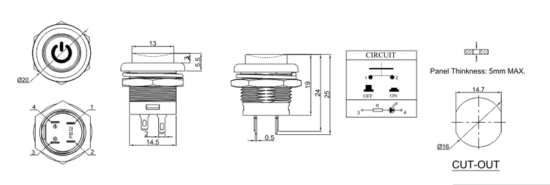 • 帶燈按鈕開關PB32-A-1B-W3-1A